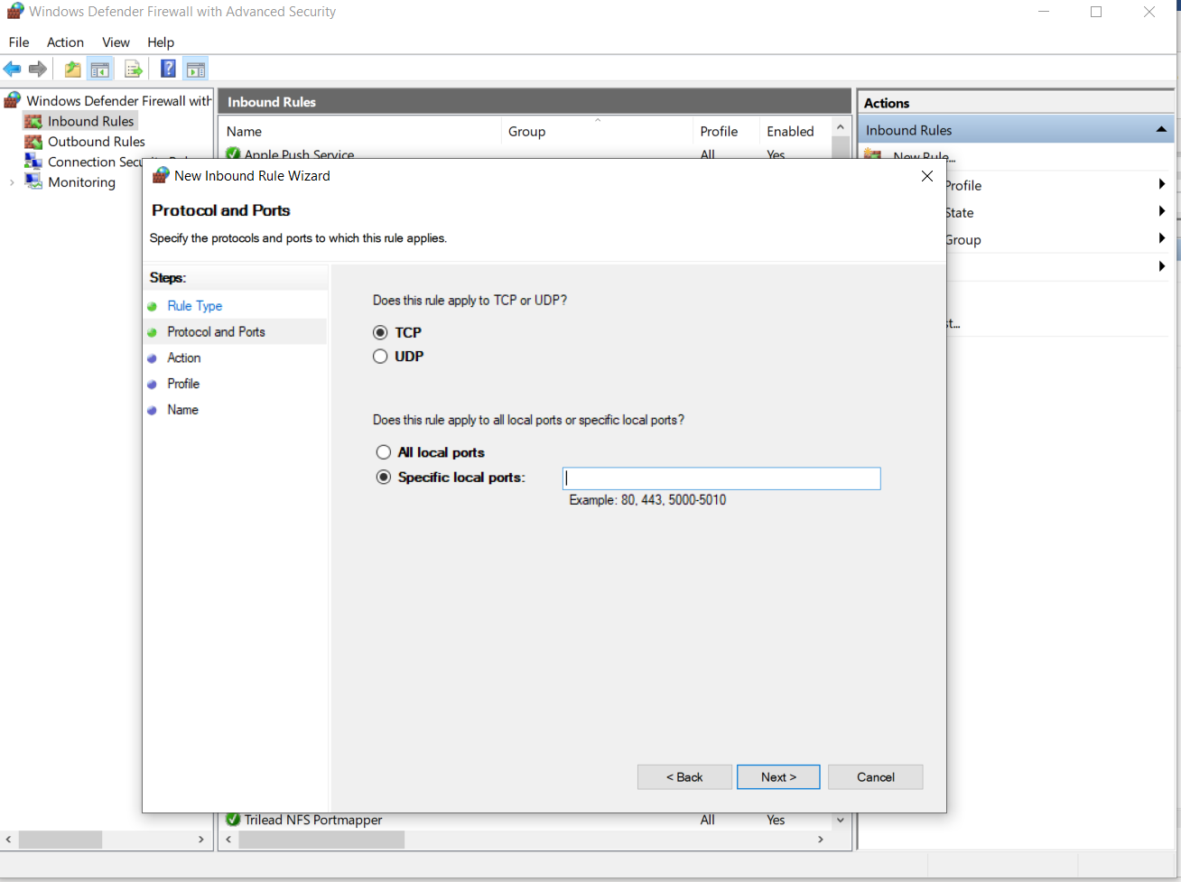 - Điền thông tin port: 445