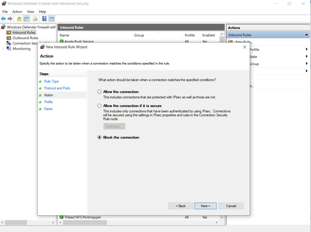 - Nhấn Finish để hoản thành block port 445 UDP